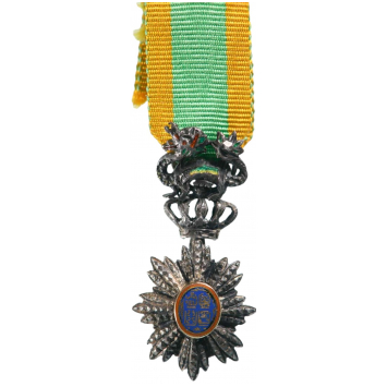 Knight's Cross Miniature, 5th Class, instituted in 1886. Breast Badge, 29x14 mm., Silver, brilliant cut rays, central medallion enameled, original suspension device, ring and ribbon. An extremely fine miniature, in superb conditionI