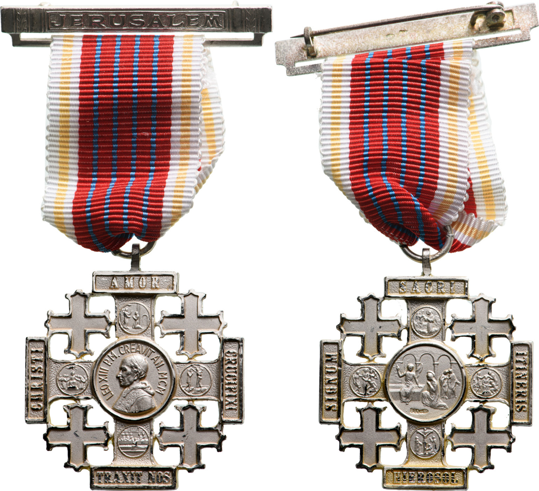 SKU: 2343 Auction has finished. Total bids: 0VATICANBreast Badge, 45x43 mm, Silver, original suspension ring and ribbon with ornamented bar "JERUSALEM". Superb condition! I Shop ID: 178956Auction LIX - Day 2