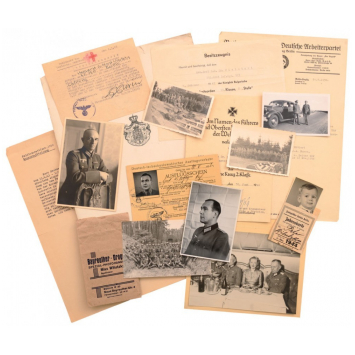 Diploma for the Iron Cross, 2nd Class, Diploma for the War Merit Cross, 2nd Class with Swords, Authorization of Wear the Bulgarian Order of Bravery, 4th Class, 2nd Grade, personal papers, Photos... Different sizes, different conditions, all backed on cardboard. A very important and interesting group! (36) RR! I