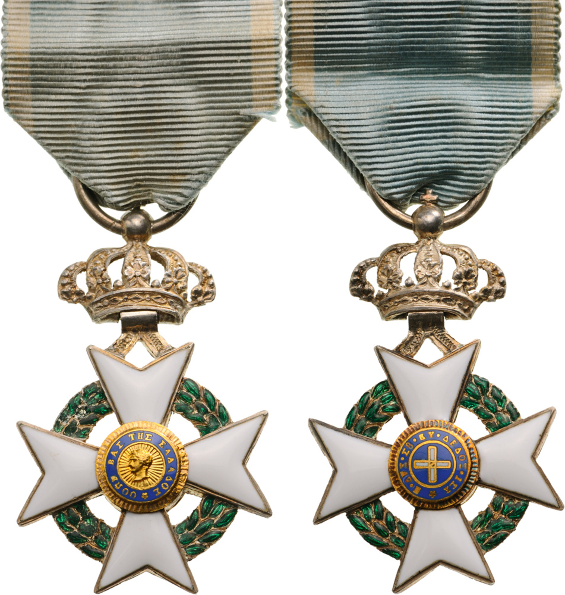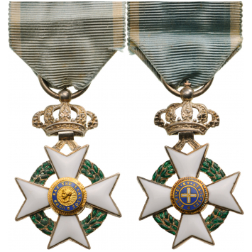 1st Type Knight's Cross 2nd Class of reduced size, 38x24 mm, in Silver and enamels, with centre medallions in gold, with King Otto's portrait (facing left) to the obverse and Bavarian colours to the reverse, hinged suspension crown and original ribbon. An extremely fine and rare piece, probably of French manufacture. Mint condiiton! I RR!