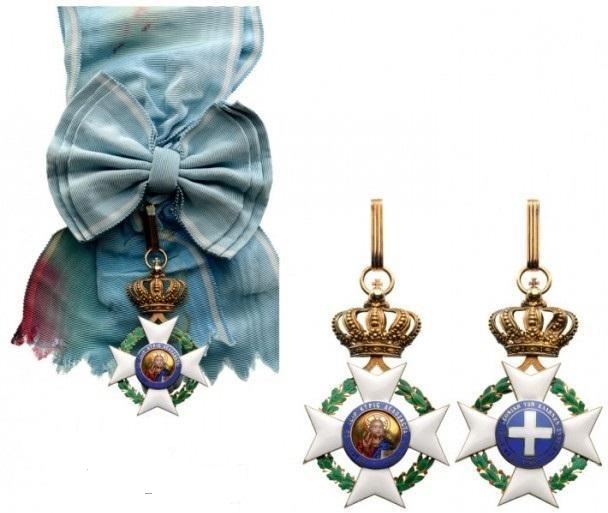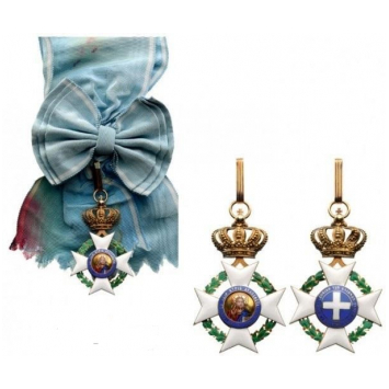 Grand Cross Badge, 2nd Type. Sash Badge, GOLD, enameled and finely painted "Pantokrator", together with original sash. The best quality and of highly attractive appearance in extremely fine condition! R! I
