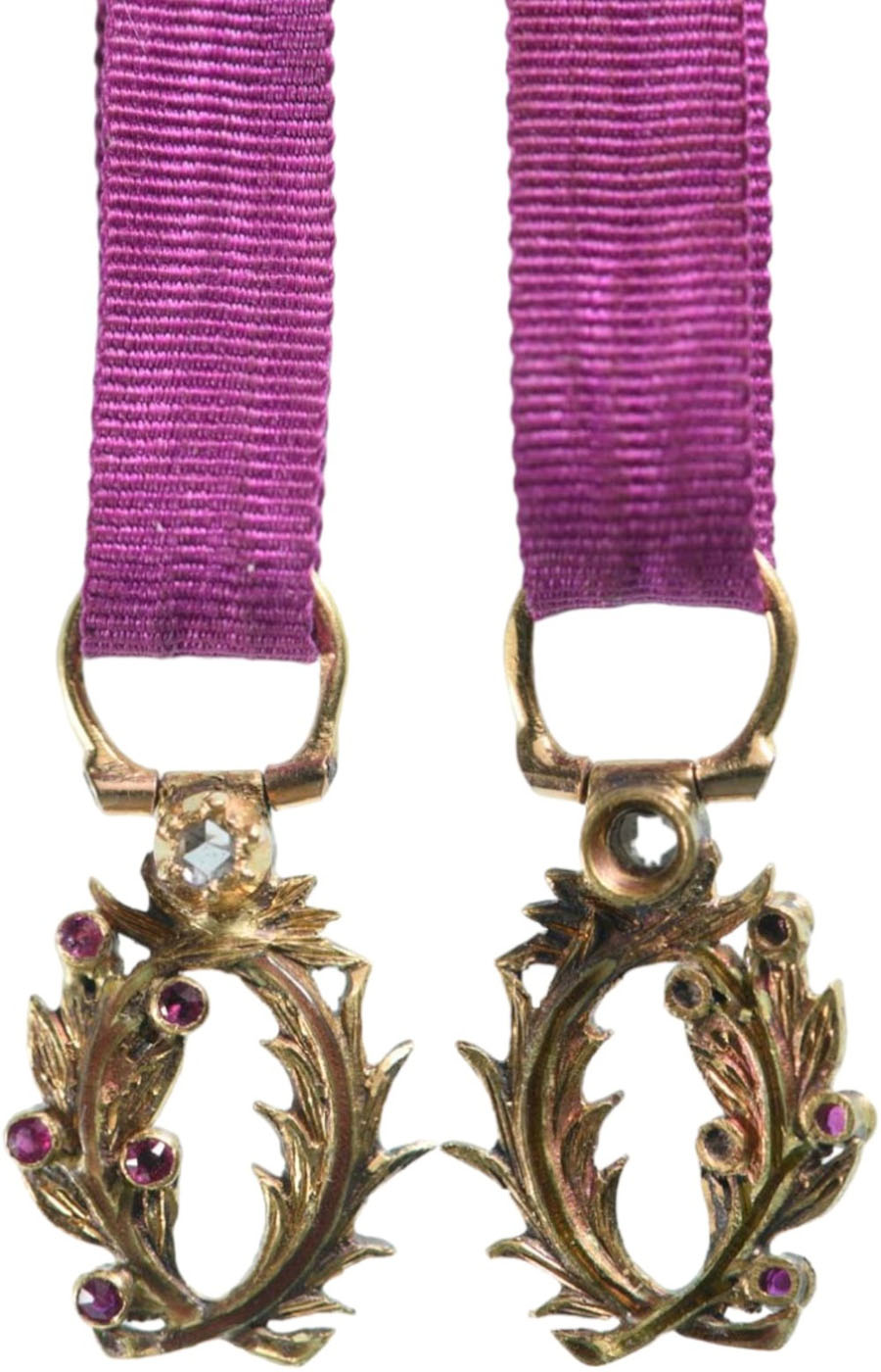 Officer`s Cross Miniature with Diamonds, 4th Class. Breast Badge, 16x10 mm, GOLD with one Brilliant, enameled, original suspension ring and ribbon. Superb! I R!