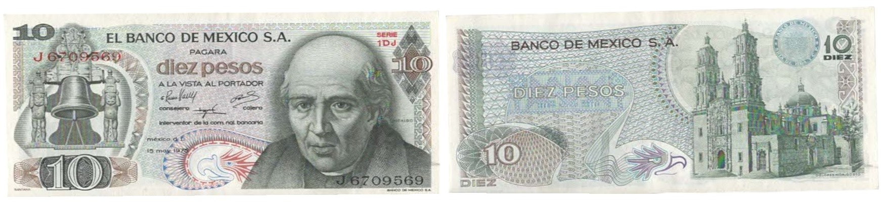 10 Pesos, 15 May 1975, Series 1DJ