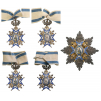 Grand Officer's Set, 3rd Type, awarded after 1903. Neck Badge, 85x50 mm, in gilt Silver, with white enameled, blue bordered arms, flanked by gilt, Serbian double eagles with enameled escutcheons; oval centre medallion with the image of the Saint wearing green robes; blue enameled outer circlet with inscription in gold lettering; reverse medallion with gilt year "1883" on white enameled field, within the blue enameled outer circlet with gilt laurel leaves; ornamented suspension loop, hinged, royal crown and suspension ring, original ribbon. Breast Star, 82 mm, with diamond-cut, chiseled rays, superimposed with the gilt silver and enameled order`s cross; the image of the Saint, also wearing green robes; the reverse with vertical pin. A superb set, in extremely fine condition. I