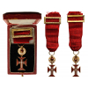 Order’s Badge of reduced size, 42x27 mm, in GOLD and enamels on both sides; round, chiseled suspension with enameled star and sacred heart; round ribbon ring and original ribbon with gold bar decorated with foliage and flowers; in the original case of issue with maker’s mark of Da Souza, Lisbon,printed on the inner cushion. An attractive piece, extremely fine condition. I R!