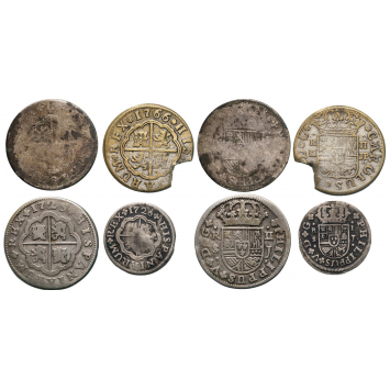 SKU: 564 Auction has finished. Total bids: 0SPAINPhilip V (1700-1746) 2 Real 1726, Sevilla mint; 1 Real 1726, Sevilla mint; 2 Real with unreadable date; Charles III (1759-1788) 2 Real 1766, Madrid mmint. F - VF (4) Shop ID: 60_66Auction LXIV