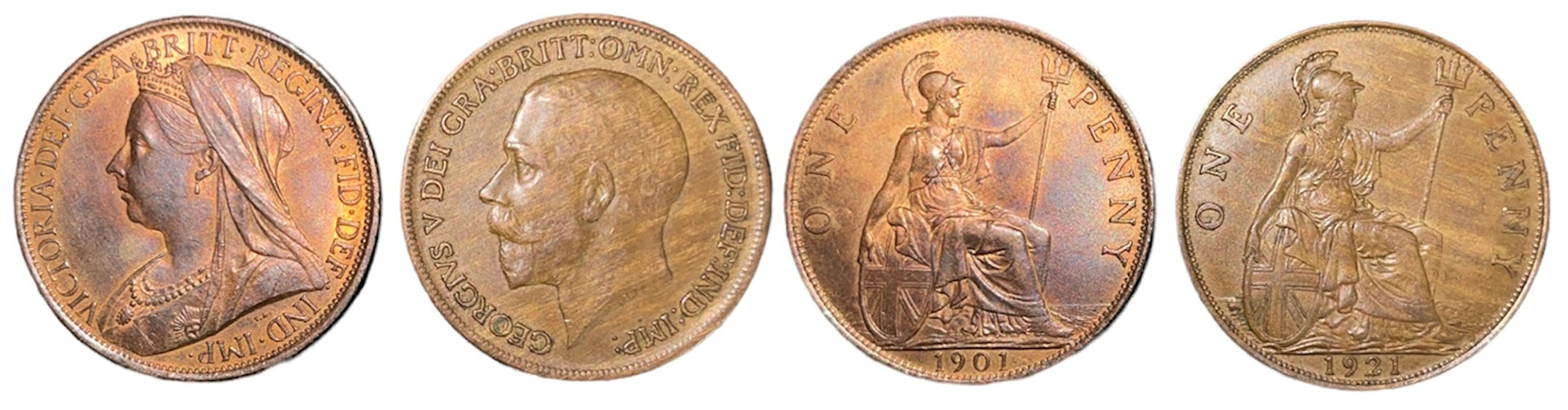 SKU: 273 Auction has finished. Total bids: 0GREAT BRITAINPenny 1901, Copper, 9.29 g; Penny 1921, Copper, 9.43 g. XF+ - UNC! (2) Shop ID: CP 307Auction LXIX