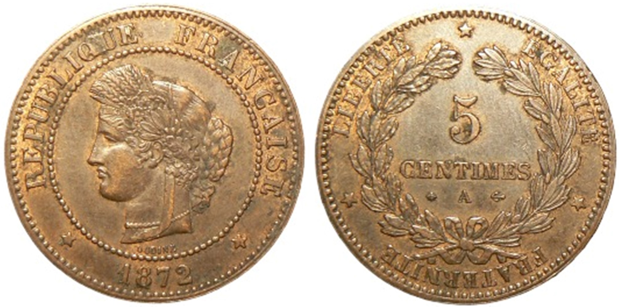3rd Republic (1870-1940), 5 Centimes 1872 A