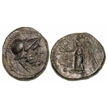 Helmeted head of Ares to right/ Nike standing to left, holding wreath, ΠETH – ΛINΩN in two lines to left. SNG ANS 607; HN Italy 2456; HGC 1, 1616. Superb patina, XF