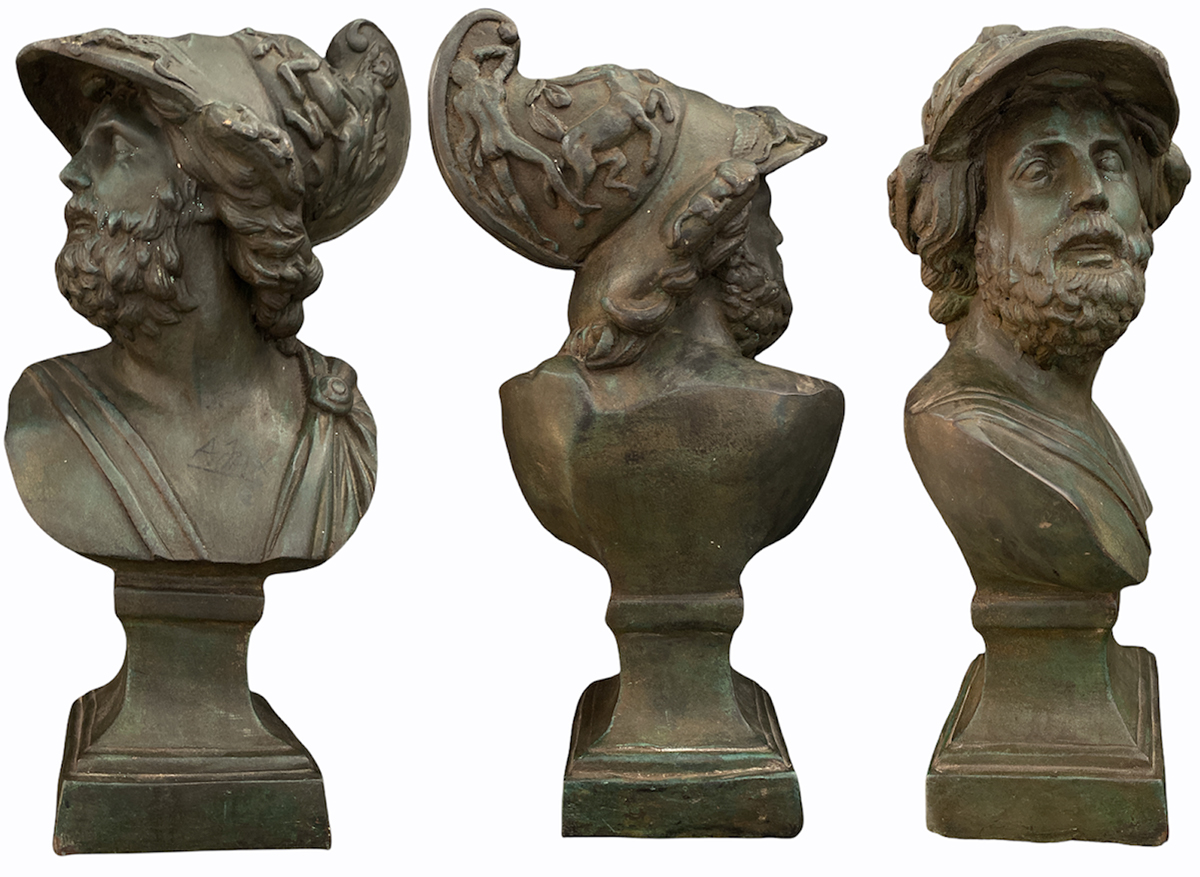 Bust of Menelaus, hollow cast in spelter gilded with bromide, mythological subject bearing the head of the king of Sparte after the marble statue in the Vatican Museum, represented helmeted and bearded, in profile, basin style on a square foot. Dimensions 37 x 17 cm. Good condition and very attractive!