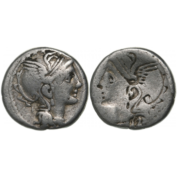 SKU: 31 Auction has finished. Total bids: 0ROMAN REPUBLICHead of Roma to left, wearing winged helmet/ Incuse of obverse. Cf. Babelon (Coelia) 3, Crawford 318/1b. VF+, rare! Shop ID: 6156Auction LXIX