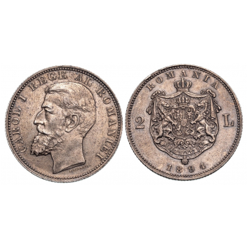 Carol I (1866 - 1914) 2 Lei 1894, Bruxelles mint