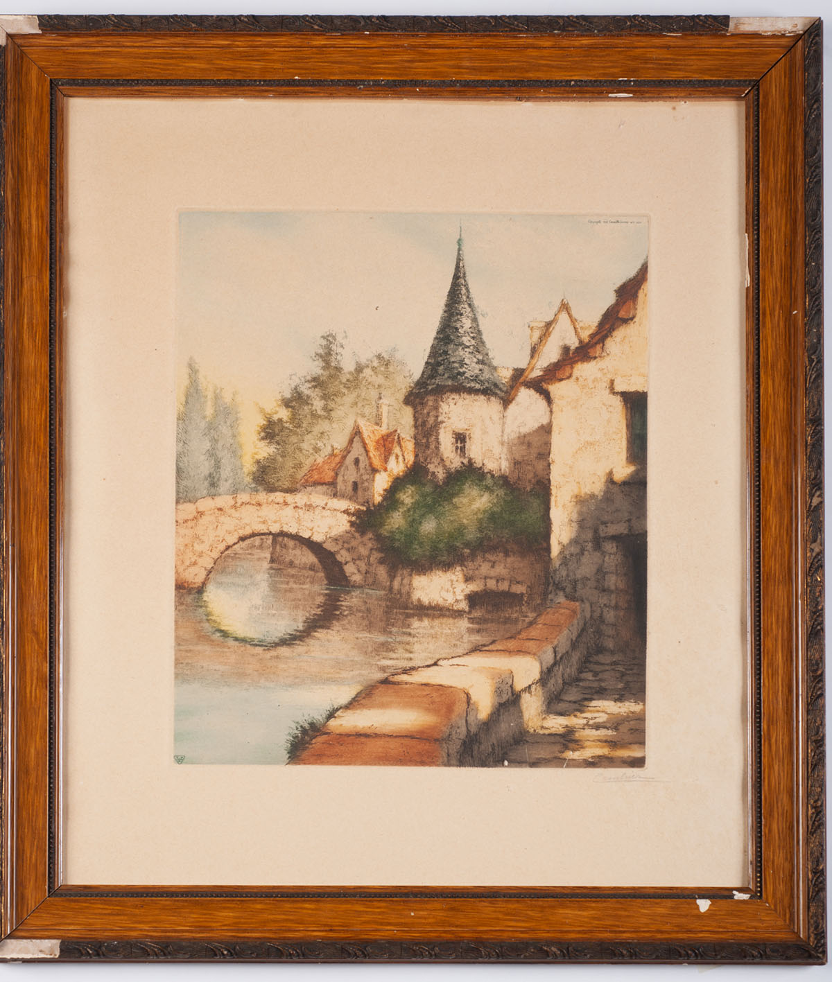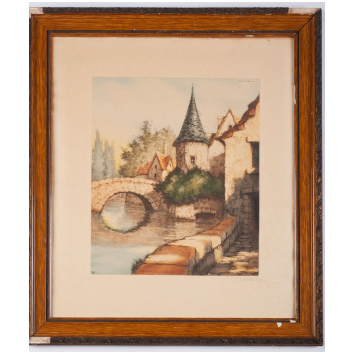 Cembrier - Nice color print about a village and river, copyright USA 1955 Camille Lucas. Dimensions 34.5 x 29.5 cm to the view. Signature in pencil. Mounted frame with gaps. Good condition.