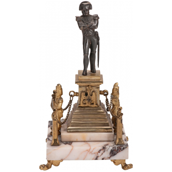White marble base four feet claws, mausoleum terrace where there are two sentries, soldiers of the old guard. Pedestal base in gold metal. Nice quality, good condition. France, memory, circa 1880/ 1900s. II