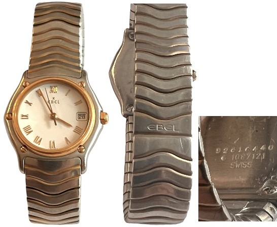 Ebel ladies wrist watch, 28 mm, two tone stainless steel case and strap, saphire crystal, quartz mouvement. In very good condition.