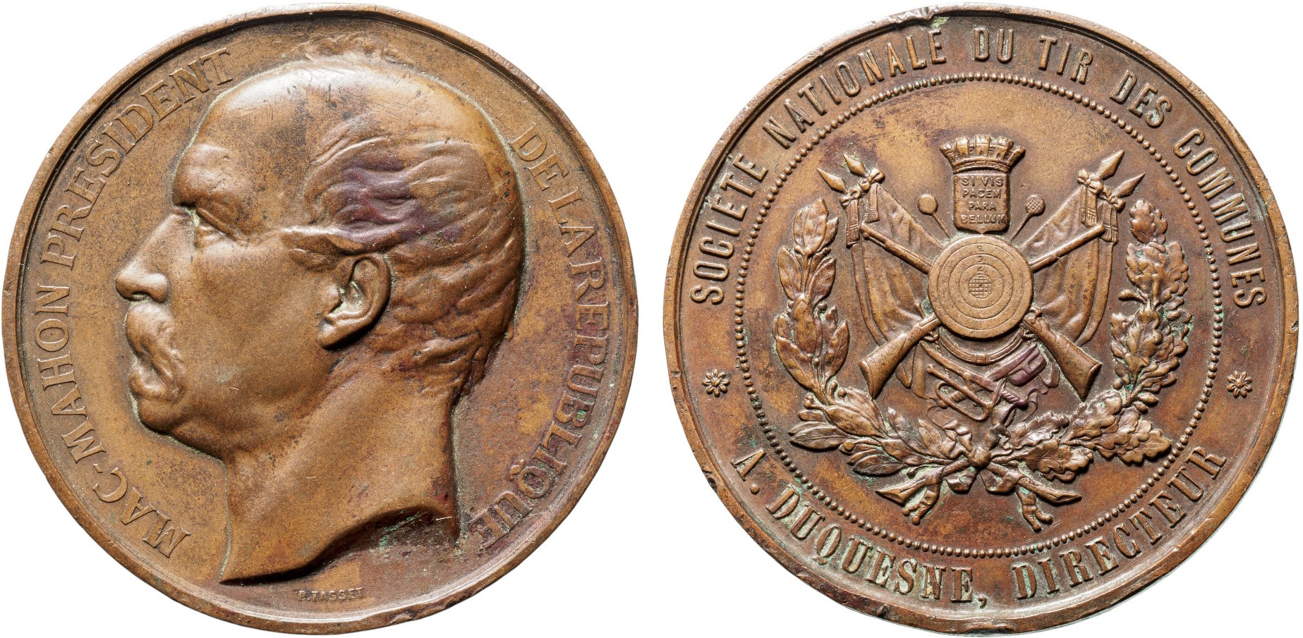 SKU: 188 Auction has finished. Total bids: 0FRANCEBronze, 51 mm. 54.1 g., MAC-MAHON PRÉSIDENT - DE LA RÉPUBLIQUE / SOCIÉTÉ NATIONALE DU TIR DES COMMUNES - A. DUQUESNE, DIRECTEUR. VF+ Shop ID: VNPAuction LXIX