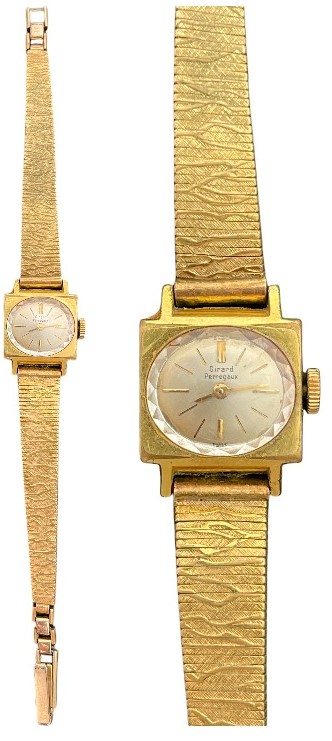 Girrard Perregaux ladies bracelet watch in gilt with, mechanical mouvement with manual winding, 18x15 mm., total lenght: 18 cm; case. Nice condition!