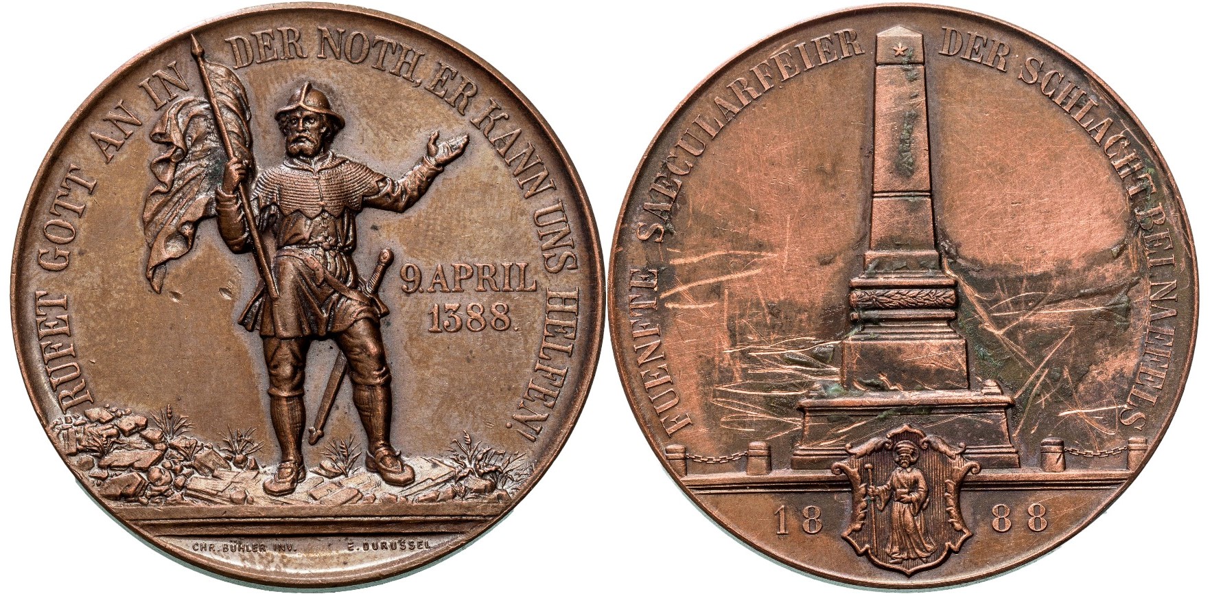 Bronze (47 mm, 49,78 g), signed Chr. Buhler & E. Durussel. Constantine I (307-337) Follis (17 mm, g) Ticunium mint,
