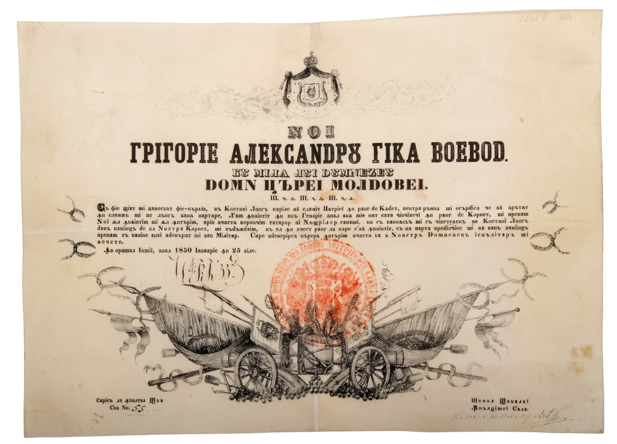 Document, 36x26 cm., dated 25th of January 1850, original signature and sceal (stamp). A superb and very rare document in extremely fine condition! I RR!