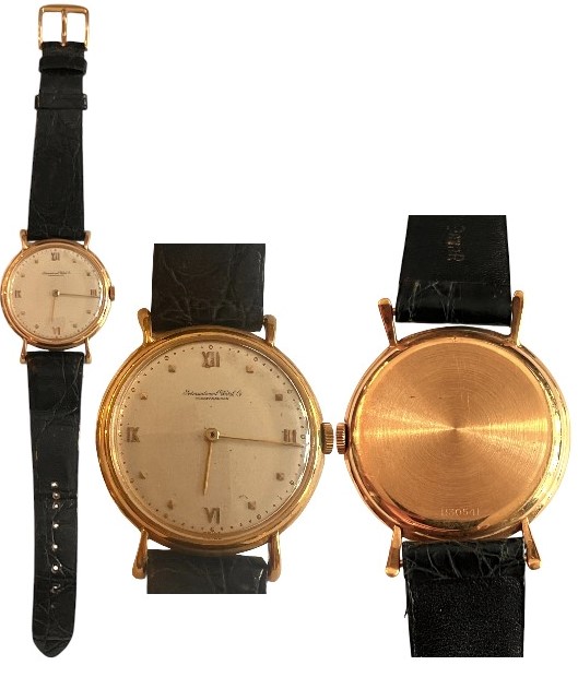 IWC Schafhausen men`s wrist watch, 38 mm, 18k Gold case, aprox. 32 g., leather strap, mechanical mouvement. In very good condition.