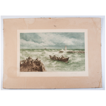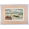 Large color engraving by T.H Weber, engraved by R. Raulussen, about the "return of fishing". Printed in Wien in 1903, size 71 x 42.5 cm in view, formerly fixed on cardboard. Fresh, minor wear on the sidelines. Good condition.