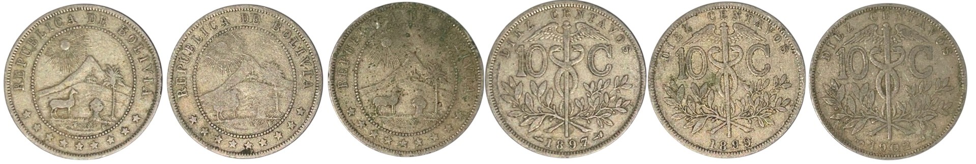 SKU: 89 Auction has finished. Total bids: 0BOLIVIACopper-Nickel. 1897, 1899, 1902. VF+ - XF (3) Shop ID: SE 42Auction LXIX