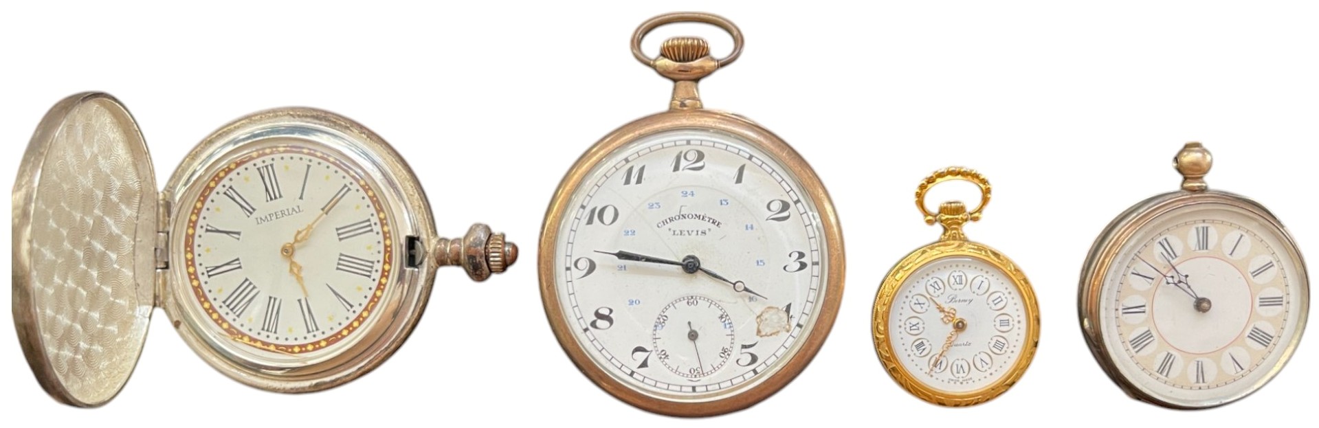 SKU: 963 Auction has finished. Total bids: 0BRACELET WATCHES, POCKET WATCHES, CLOCKS - SWITZERLAND1 x Chronometre Levis, gold plated, 1 x Berney, 1x Imperial, 1 x no name. Sold as is! Shop ID: SE 83Auction LXIX
