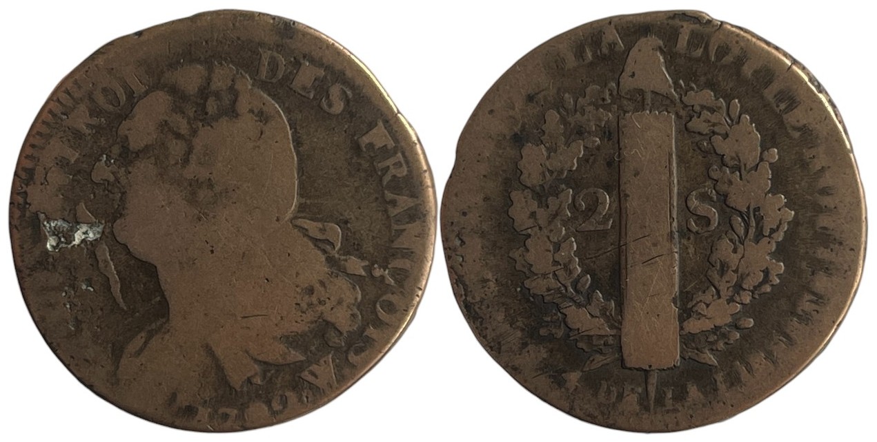 Louis XVI (1774-1792) Constitution. 2 Sols, Year 4/1792 W. Lille Mint