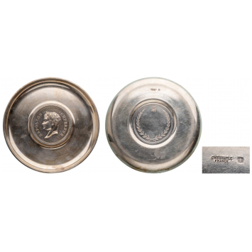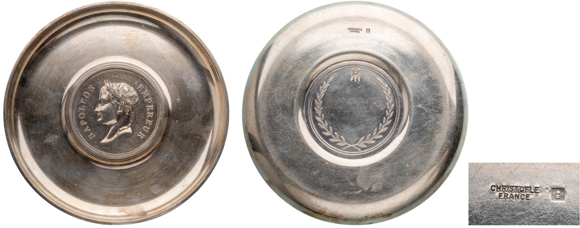 Silvered ashtree by Christofle, with Imperial portrait in the center. Diam.: 119 mm. Perfect condition and very attractive!
