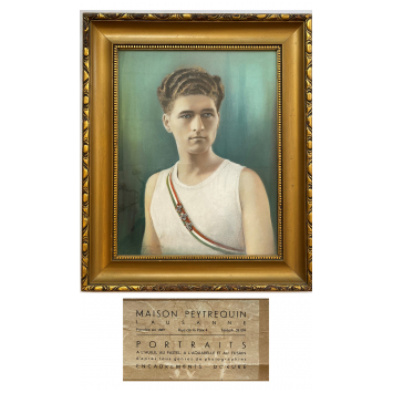 Pastel on strong paper about a young athlete (probably Italian) wearing medals from Swiss competitions on his chest. Signed and dated 1936. Dimensions 34.5 x 26.5 cm at sight, 46 x 38 in a modern frame. Very fresh, good condition! Gaston-Robert Peytrequin, Swiss painter, was very influenced by the 1930s and the rise of totalitarianism. Although colorful, its aesthetics and themes often give pride of place to the realistic trend of the time.