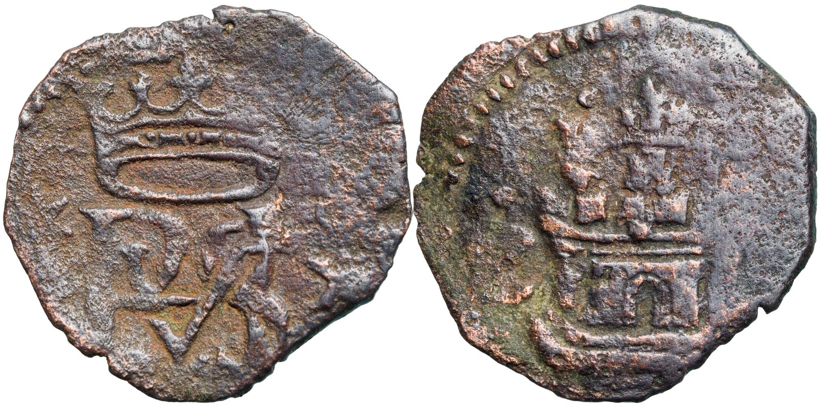 SKU: 502 Auction has finished. Total bids: 0SPAINBronze, 0,7 g., Monogram / Castle. Cayon 3292. VF Shop ID: 60i211Auction LXIX