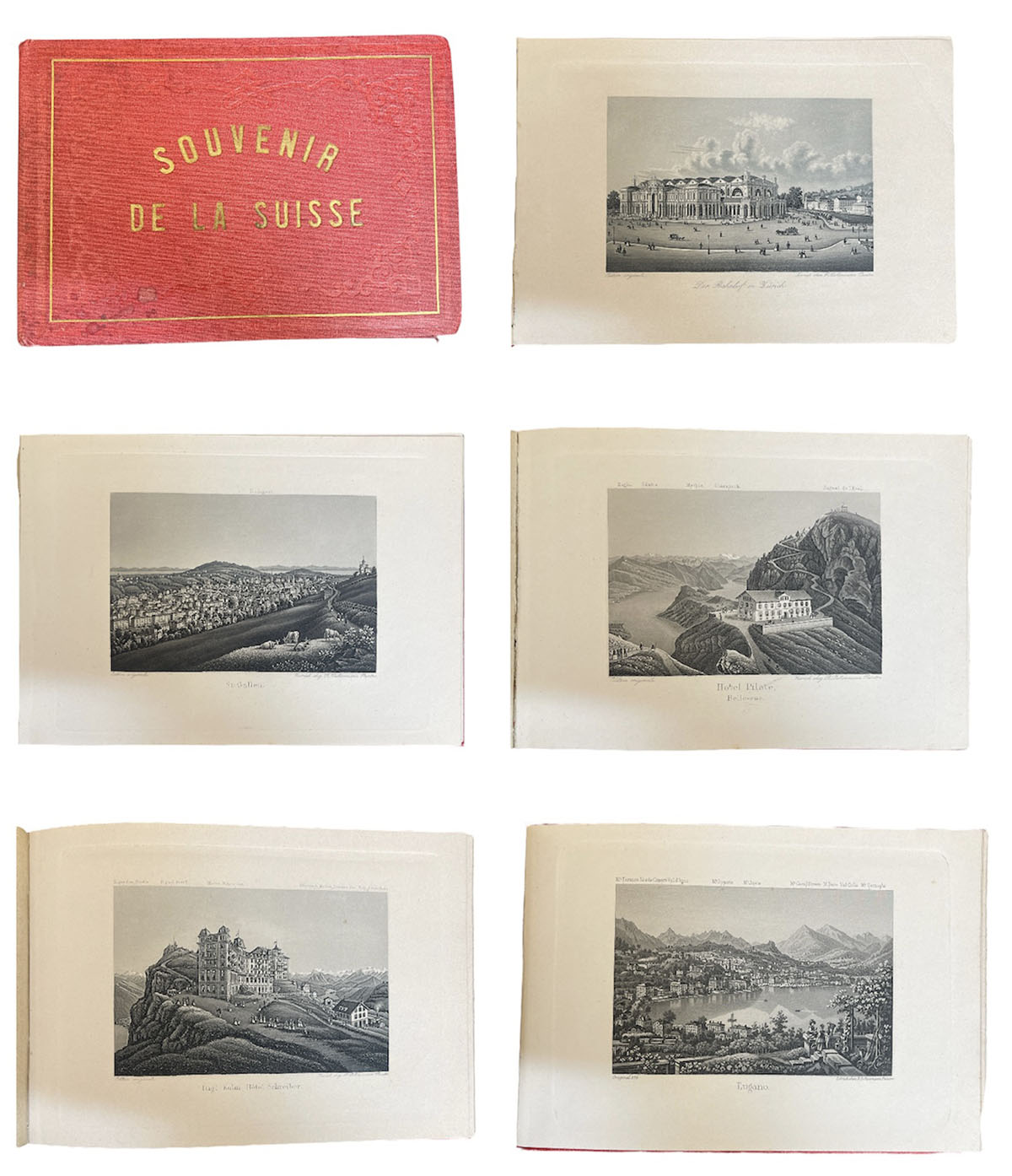 R. Dickenmann, Painter, Zurich circa 1860 "Souvenir de la Suisse" Album with 50 aquatins of Swiss cities and important landscapes, hardcover edition in a very good state of preseravation. Dim.: 19x13.5 cm. Rare! I