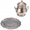 1 / Sugar bowl in silver, side handles and small foot. Height 14 cm, Belgian hallmark, circa 1900. A small hump on the body.