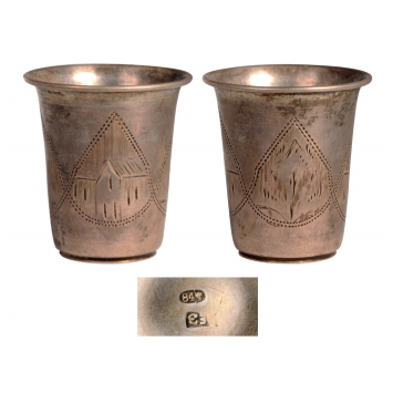 Straight form, carving by structured motives, 4.4 cm high, weight 18 g, "84" standard guarantee, town mark not identified, silversmith (cyr) Ivan Zuev.