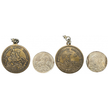 SKU: 292 Auction has finished. Total bids: 0HUNGARYSilver (27 mm, 5.95 g). VF, mounted; AE (37 mm, 11. 47 g), original suspension loop and ring. XF (2) Shop ID: CP 258Auction LXIX