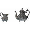 Three-piece set consisting of a large coffee maker, a covered sugar bowl and a milk jug