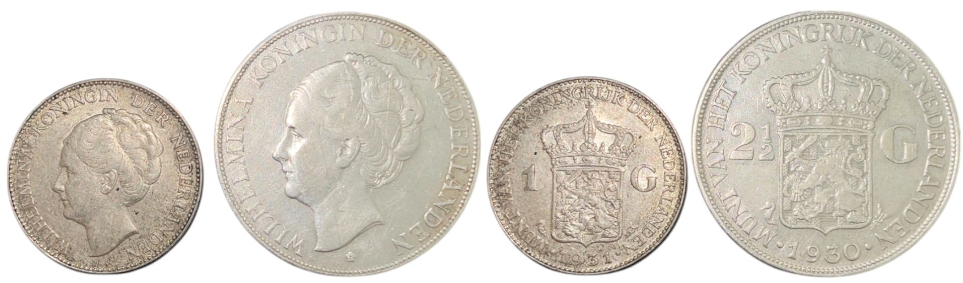 Wilhelmina (1890 - 1948), 1 Gulden 1931, 2 Gulden 1932, Utrecht mint. Lot of 2.