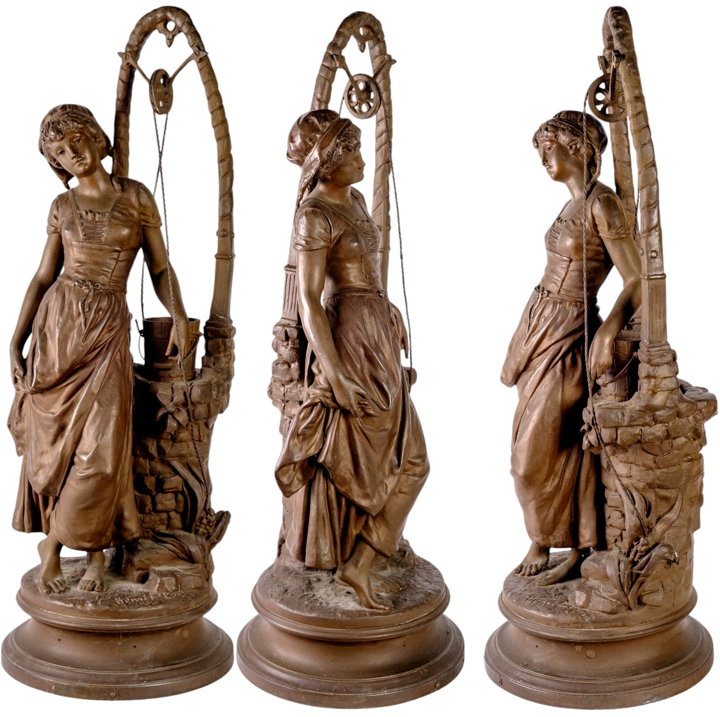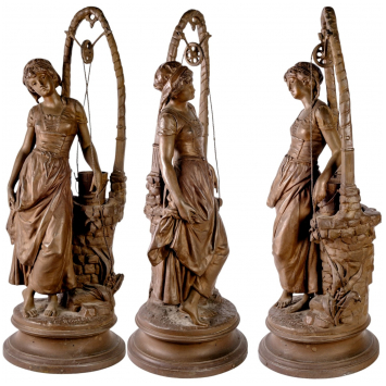 Ple (Henri Honore, Paris 1853-1922), large bronze statue with chocolate patina "The young woman at the well", from the 1900 period, probably from the Brig France workshops (unspecified). Signature of the artist on the terrace. Good general condition. Overall dimensions 75.5 cm, 64.5 cm for the statue alone. Imposing and superb!