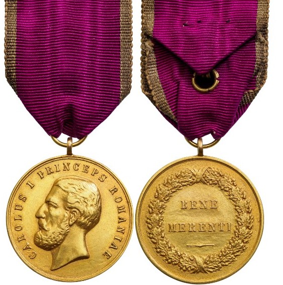 SKU: 233 Auction has finished. Total bids: 0ROMANIABreast Badge, 36x31mm., GOLD, 18 g., original suspension ring and ribbon. A high rarity in gold, most probably awarded to a head of state. RR! Shop ID: 63.65Auction LXVI