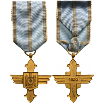 Golden Cross, 2nd Model with cipher of King Mihai I, for Civil, 45x42 mm in gilt Copper, with original ribbon. Of the highest rarity, for the first time in a public sale and extremely fine! I RR!