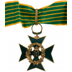Commander`s Cross, 2nd Model. Neck Badge, 56 mm, gilt Silver, hallmarked "crown-900", one side enameled, obverse with wreath of oak leaves and corn ears, in the centre with Mihai I`s cipher, with original suspension ring, loop and correct ribbon. I RR!