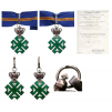 Commander`s Cross. Neck Badge, 63x44 mm, gilt Silver, both sides enameled, original suspension ring, loop and ribbon, together with extremely rare awarding document dated 3rd of April 1931, to Aurel Cosma, old Union Fighter, original signature of King Carol II. Very rare badge awarded only 40 times to Romanian citizens! I- RR!