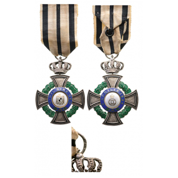 Knight`s Cross , for Civil (1935). Breast Badge, 55x40 mm, gilt Silver, maker`s mark "KK", hallmark "900", both sides enameled, blue enameled legend on obverse "Nihil Sine Deo" and on reverse "8 Aprilie 1844", with original suspension ring and ribbon. An extremely rare cross, very seldom awarded, in perfect condition! I RR!