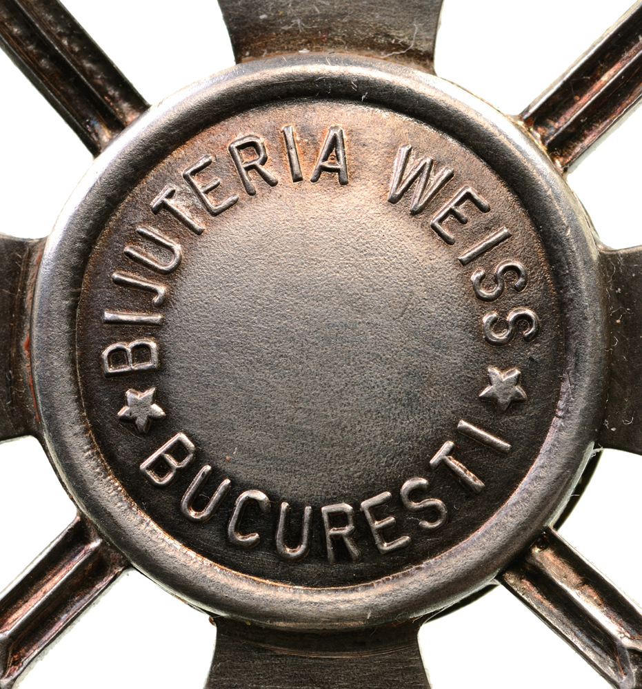 3rd Class Breast Star, 65x49 mm, gilt Silver, maker`s mark "Heinrich Weiss, Bucarest", the gold medallion on the obverse depicting St. George terrassing the dragon, on reverse medium pin. An extremely rare order in perfect condition, very seldom awarded exclusively for merits in war! I RR!