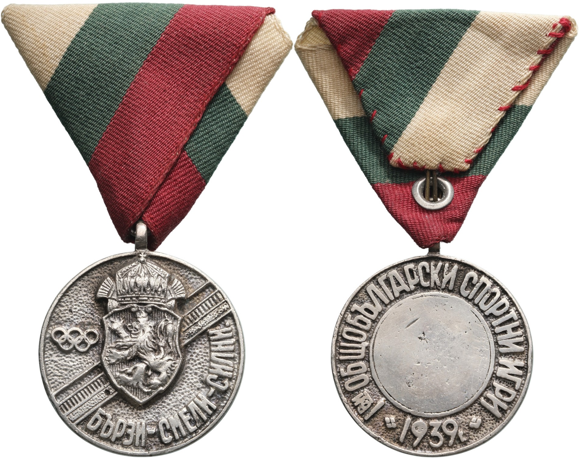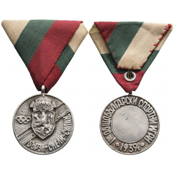 SKU: 310 Auction has finished. Total bids: 1BULGARIASilvered Bronze Medal, 42x37 mm., 26.5 g., original suspension loop and triangular ribbon. Scarce! Extremely fine! I- R! Shop ID: ST40