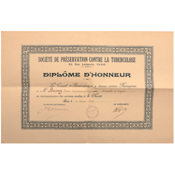 SKU: 667 The Live Auction begins in: Click here to register for the live Auction Starting price 10 EUR Log in to place a bid. Total bids: 0FRANCEDiploma for a Silver Medal of Honor of the Society of Preservation against Tuberculosis awarded to a French Officer, 32x50 cm, dated 1907, folded. I Shop ID: 30552Auction LXX - Day 1
