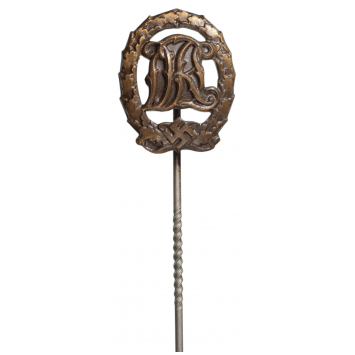 SKU: 735 The Live Auction begins in: Click here to register for the live Auction Starting price 30 EUR Log in to place a bid. Total bids: 0GERMANY - 3RD REICHBronze Grade Award Miniature. Breast Badge, 16x14 mm, Bronze, "St. & L. maker's mark", original long pin on the back. Scarce! I R! Shop ID: OMSA18Auction LXX - Day 1