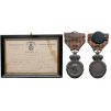 Breast Badge, 51x31 mm, Bronze, original suspension ring and ribbon, together with original awarding document to a Dutchman, who served between 1792 and 1815, dated 5th of May 1821. Interesting group! I