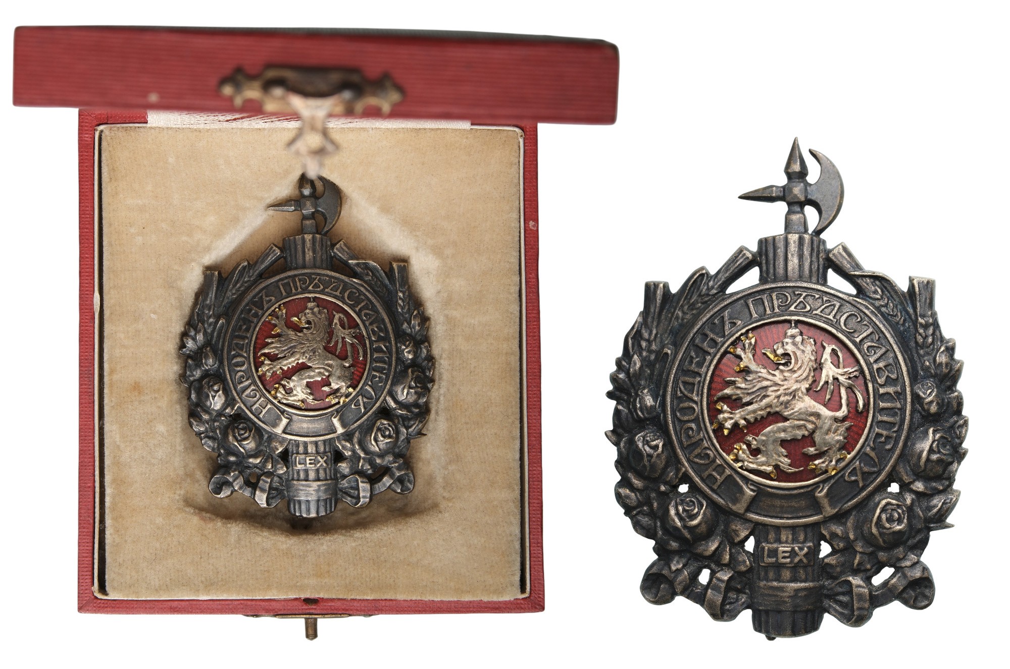 Breast Badge, 61x44 mm., Silver and Bronze, center enameled, original vertical pin on reverse, in case of issue. Very rare and superb, in best condition! I RR!