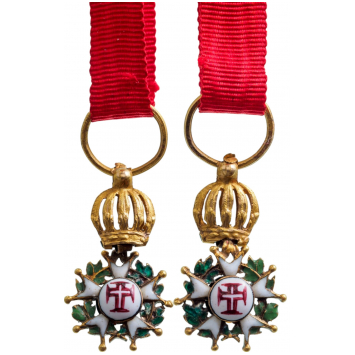 SKU: 105 The Live Auction begins in: Click here to register for the live Auction Starting price 200 EUR Log in to place a bid. Total bids: 0BRAZILKnight's Cross of Reduced size. Breast Badge, 18x19 mm, GOLD, 1 g, and enamels, original suspension crown and ribbon. A very rare and superb early 19th Century badge, in extremely fine condition! I R! Shop ID: CAL4Auction LXX - Day 1